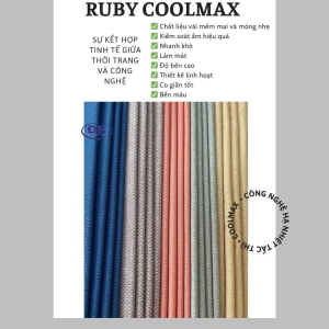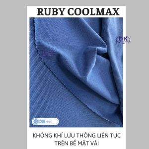 RUBY COOLMAX là loại vải có cấu trúc dạng “rãnh thoát nước”: Khi nước thấm qua sợi vải sẽ được đi qua các rãnh rồi thoát ra bên ngoài để đến một diện tích bề mặt rộng lớn hơn, từ đó giúp quá trình bay hơi diễn ra nhanh hơn. một công nghệ vải ưu việc được phát triển chuyên biệt cho các dòng vải thể thao, sau này phổ biến hơn cho các dòng áo polo, áo khoác, không chỉ giữ nền thoải mái mà còn tái tạo cảm giác tự nhiên trên làn da.